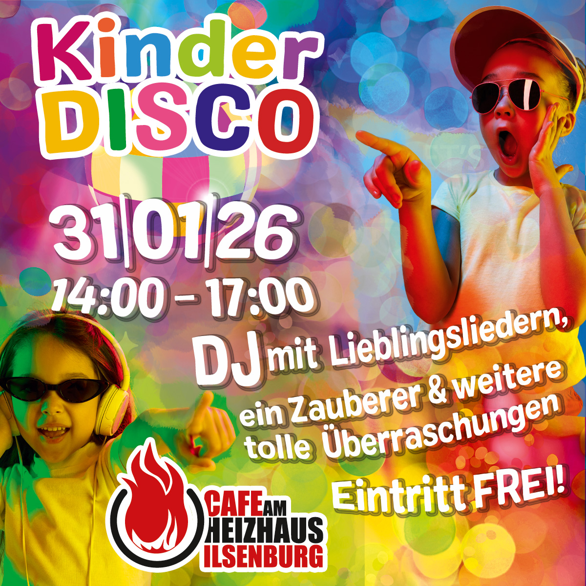 Samstag 31. Januar - Jetzt geht es wieder um unsere kleinen Gäste: wir laden herzlich zu unserer Kinderdisco mit einem bunten und abwechslungsreichen Programm im Cafe am Heizhaus ein! Freut Euch auf einen Nachmittag voller Musik, Tanz und spannender Aktivitäten wie Fotobox, Glitzertattoos und Bastelstation.